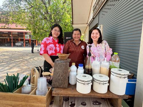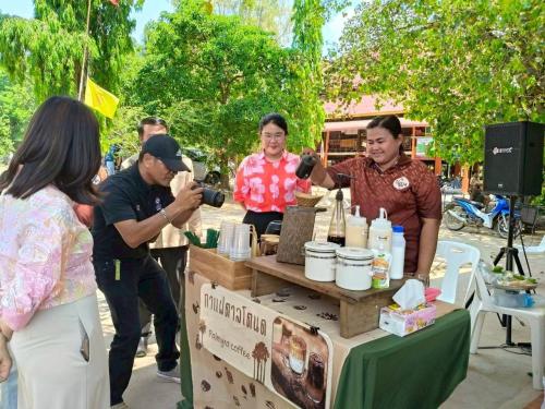 นอกจากนี้ยังมีการสาธิตกิจกรรมท่องเที่ยวของชุมชน ได้เเก่ การย้อมผ้าสีจากใบตาลพร้อมทั้งปั๊มลายอัตลักษณ์ชุมชนลงบนผืนผ้า เเละการดริปกาเเฟน้ำตาลโตนดจากเเท่นดริปไม้ตาล